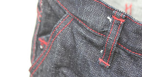 一般的に「生地の端」を意味します。生地の端はほつれない様に頑丈に縫われおり、一目でわかる様に1本色糸が入っています。当店のオリジナルパンツはとことん生地こだわっているため、「ダブルニー」と「お尻をガードする為のパット」に17.5オンス生地を贅沢に使うことで、いかなる条件でも耐久性に優れたものを追及しています。膝部分には、ダイヤモンドステッチを使い、デザイン性も兼ね備えています。17.5オンス・セルビッジ・ダブルニーを存分に堪能できます。通常のジーンズは13~14オンスの生地で作成されていますが、当店の17.5オンスセルヴィッチデニムなら、ヘビーオンスを使用しているためクロップドパンツでありながら『ひげ』・『ハチの巣』・『よじれ』 『あたり』を十分に楽しめる素材に仕上がっています。